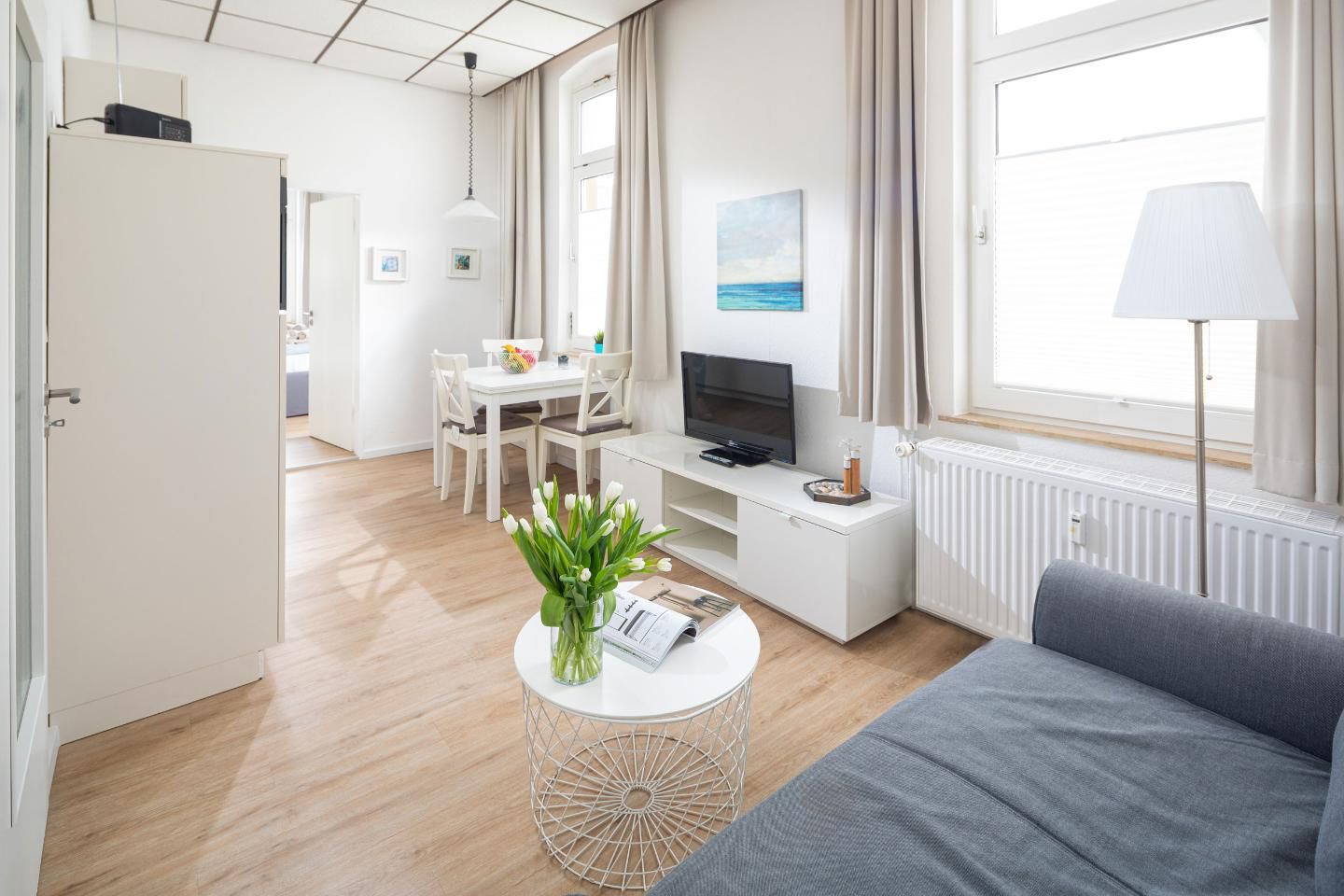 33 m² große, helle und moderne 2 Zimmer Ferienwohnung. Schnelles W-LAN. Strand- und zentrumsnah.